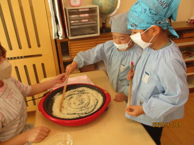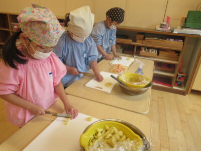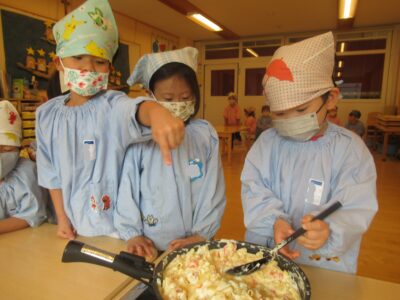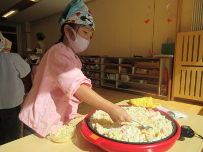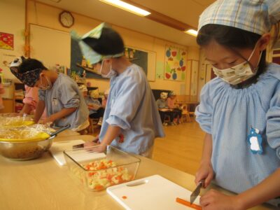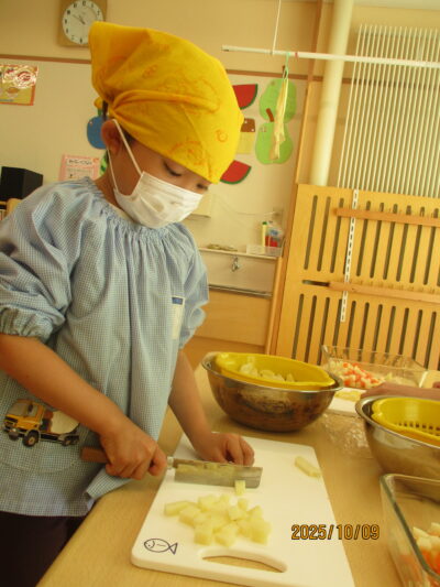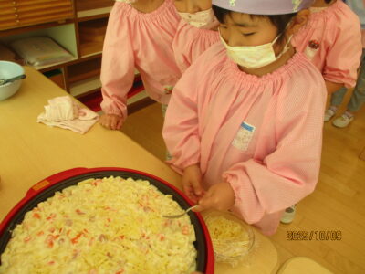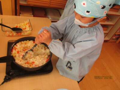 10月9日(木)にさくら組、10日(金)にゆり組がクッキングを行いました!