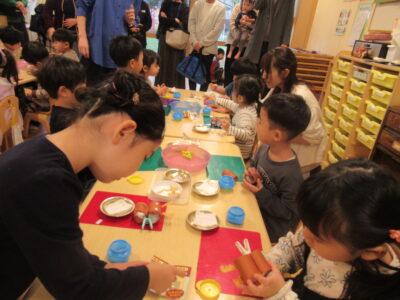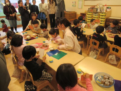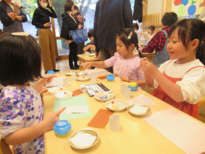 子どもたちが思い思いに工夫しながら製作に取り組む姿を、保護者の皆様に見ていただくことが出来ました。