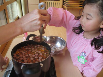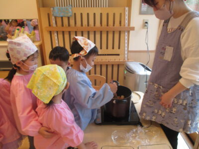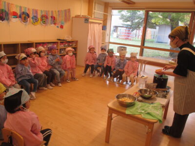 ばら組は23日、ひまわり組は24日にクッキングを行いました。