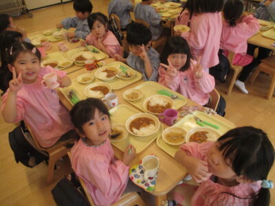 神様のお恵みに感謝して、みんなで作ったカレーをいただきました。