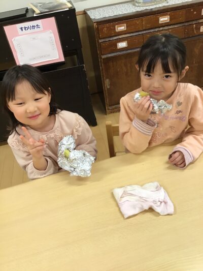 「見つけた!」「あったかーい♪」と、自分の手で見つけたおいもにとっても嬉しそうな表情が見られました。