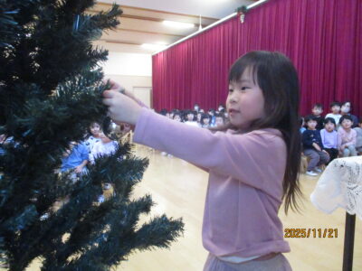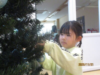 また、大きなクリスマスツリーにも少しずつ飾り付けをします。