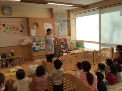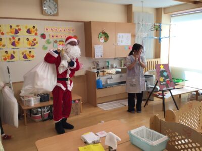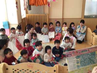 12月4日にこどもの家でニコラオのお祝いがありました。ニコラオおじさんの日だよ、とワクワクした様子の子ども達。乳児クラスはうさぎ組でお集まりを開き、クリスマスにちなんだ出し物を見たり、みんなで♪ジングルベルの歌も歌いましたよ。クリスマスの歌はみんな大好きで、身振りをつけながら大きな声で楽しんで歌っていました。