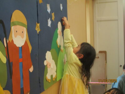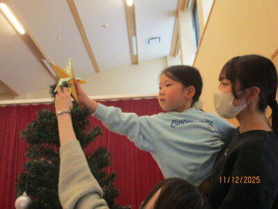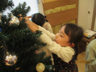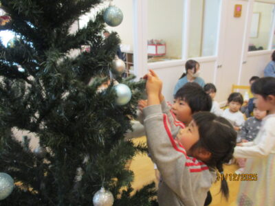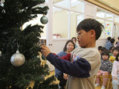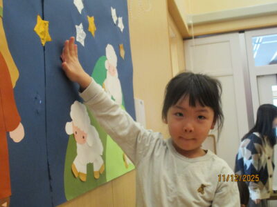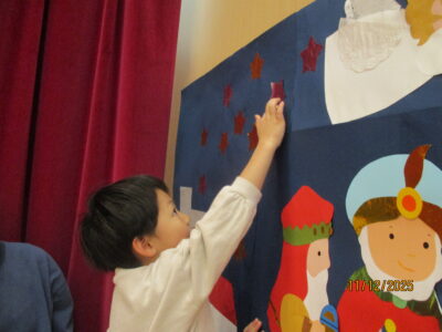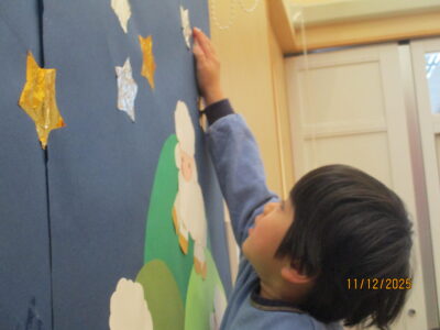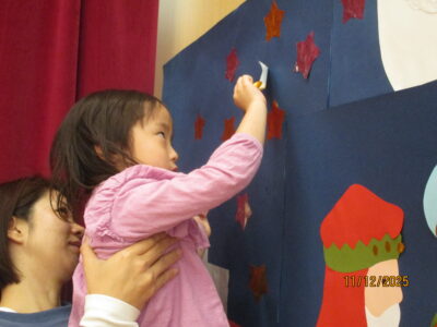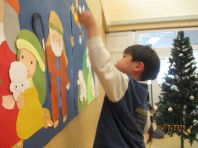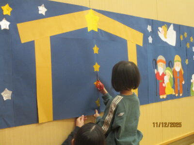年少さん、年中さんのお友だちは、お星さまやクリスマスツリーの飾りつけをしてくれました。