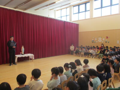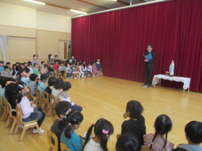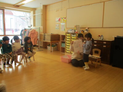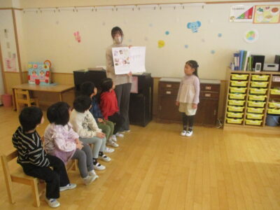 園長先生からのお話では、3学期は進級、進学の準備をする大切な期間であることや、難しいことも諦めずに取り組む力について聞かせていただきました。