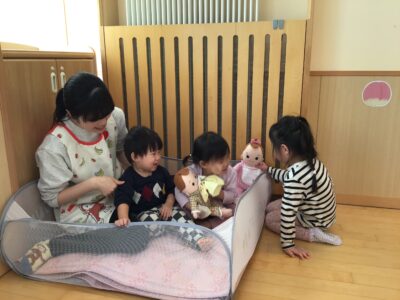 くま組さんがリアルな真似っこをしたり世界観をもって遊ぶ様子はとても楽しそうで、周りにいい刺激が広がっていきます。