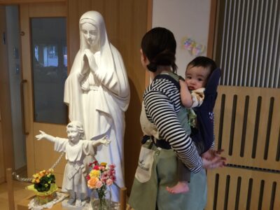 廊下のお散歩のひととき。マリア様に見守られながら、お花や壁の装飾…いろいろなものに出会いながら気分転換。